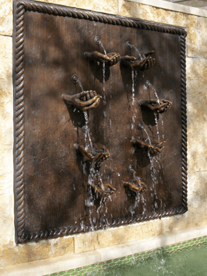 This unique bronze fountain was created for the Dillard family of Fort Worth, Texas. William Bibb, ASLA, Design architect and owner of Archiverde, LLC designed the concept for the sculpture, and it was featured on the cover of Landscape Architecture Specifier. Tom was delighted to create this sculpture of the hands of Mr. & Mrs. Dillard and their six children with the flowing water depicting the Spirit pouring out from the parents to their children. This bronze fountain has become a treasured family heirloom. Please call to discuss your unique fountain design concept.
